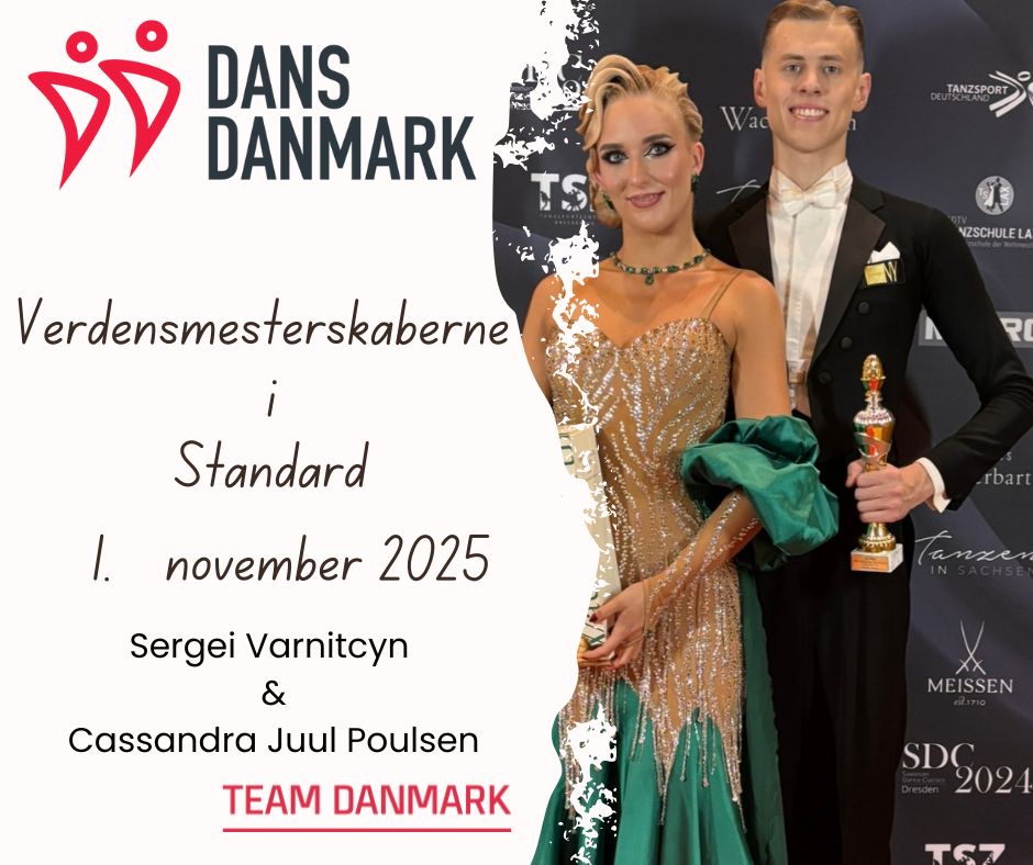 For Dmitri Kolobov og Signe Busk har 2025 allerede været et exceptionelt danseår. Den 18. oktober kunne de lade sig hylde som Verdensmestre i Standard Showdance, og parret ligger aktuelt som nr. 3 i verden på den internationale rangliste.